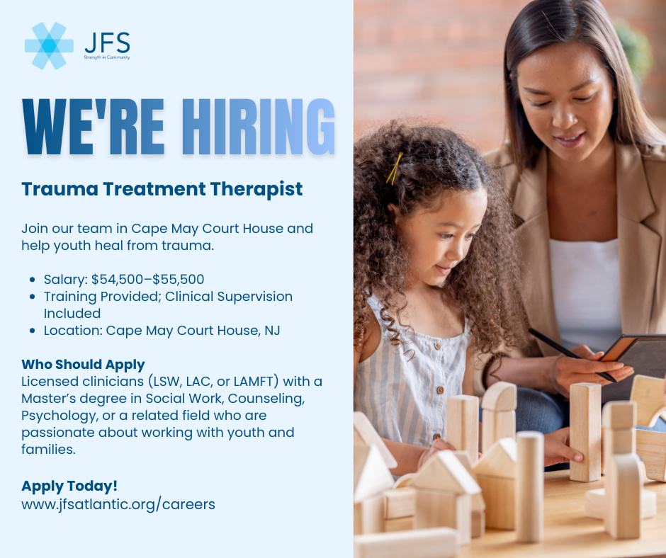 FOR IMMEDIATE RELEASE Press Room Archive Bacharach Foundation Awards $100,000 Grant to JFS February 18, 2026 Read More » JFS’ Lynn Kramer Village by the Shore Programs in March February 17, 2026 Read More » JFS’ Lynn Kramer Village by the Shore Programs in February January 20, 2026 Read More » JFS to Host Its Own Souper Bowl – Agency Hopes to Score Hundreds of Canned and Packaged Soups January 12, 2026 Read More » Volunteer Opportunities Available for the Martin Luther King, Jr. Day of Service at JFS January 6, 2026 Read More » JFS is Hiring – Offering On-the-Spot Interviews in January December 29, 2025 Read More » JFS Annual Turkey Drive – Agency Provides 725 Families with Thanksgiving Dinners December 2, 2025 Read More » Enjoy Fascinating Programs in December Hosted by JFS’ Lynn Kramer Village by the Shore November 25, 2025 Read More » Greg Rosenblit Promoted to Chief People and Performance Officer at JFS November 17, 2025 Read More » JFS Annual Turkey Drive Donations Needed to Make Thanksgiving Special for Families October 21, 2025 Read More » Press Room In The News Special Events Newsletters Gallery